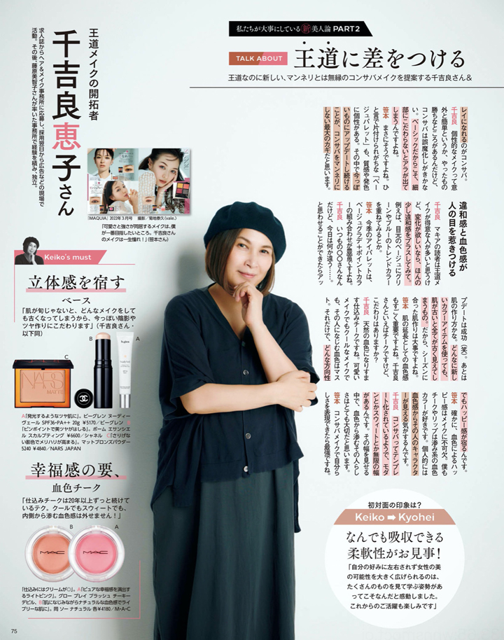 ヘア&メイクアップアーティストで王道メイクの開拓者・千吉良恵子さんにヌーディーヴェールをご紹介いただきました。